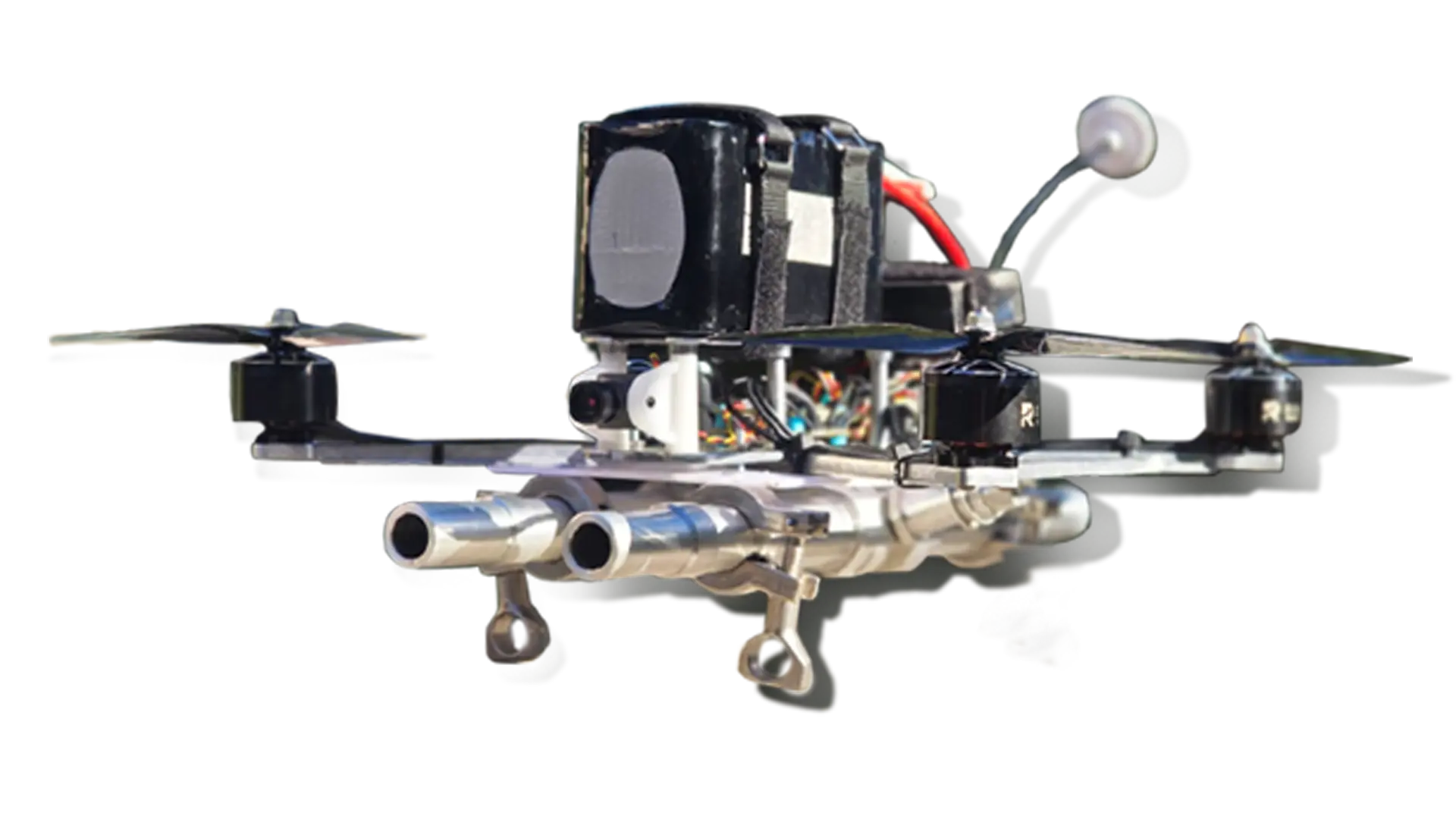 FPV KNOCK 11 оснащений титановим дробовиком, спеціально розробленим для ефективного знищення ворожих дронів типу MAVIC.