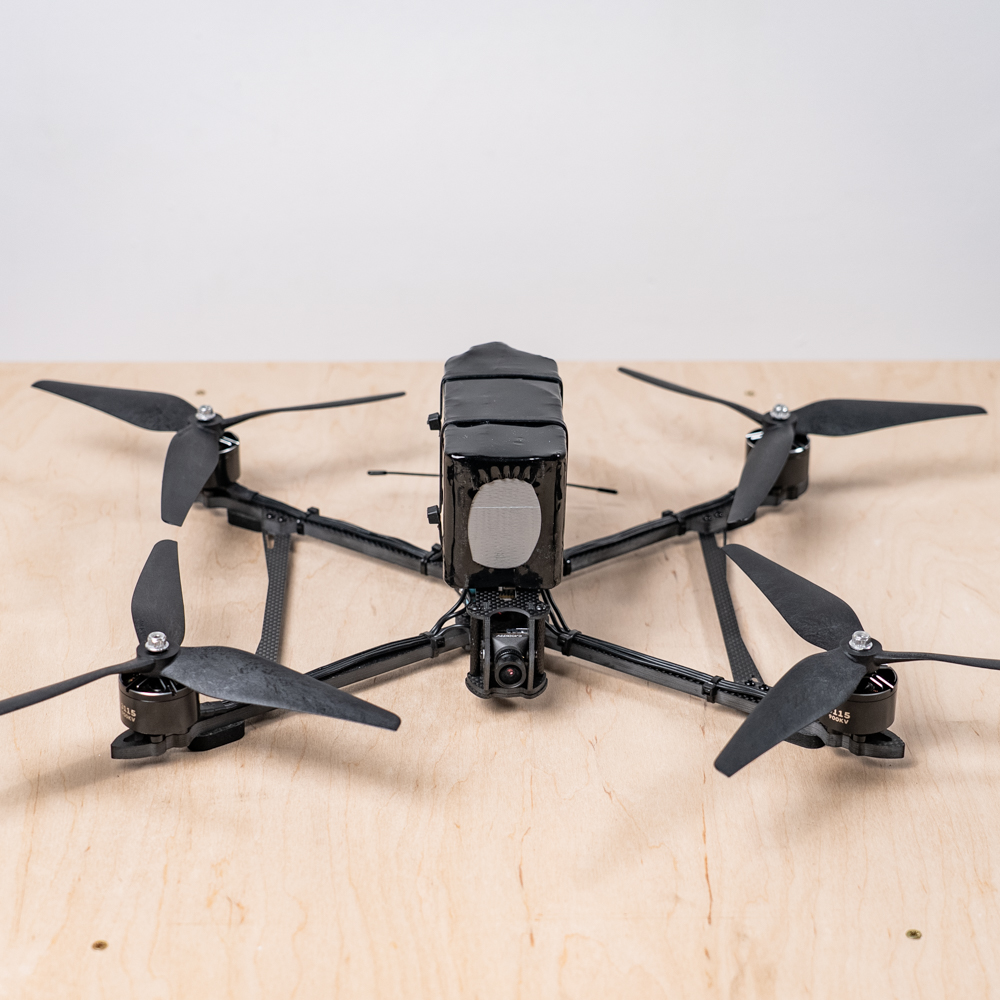 Оснащений карбоновою рамою Mark4 v2 діаметром 10 дюймів, камерою Caddx Ratel Pro з роздільною здатністю 1500TVL, моторами RedyToSky 3115 900KV, пропелерами HQ Prop 10x5x3, польотним стеком Sologood F722 60A та акумулятором 6s3p Li-ion ємністю 15000 mAh. Оптоволоконна котушка G657.А2 довжиною 10 км і товщиною 0.25 мм забезпечує надійний канал зв’язку, захищений від перешкод.