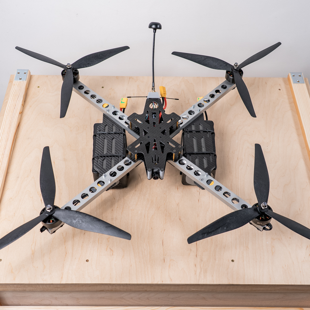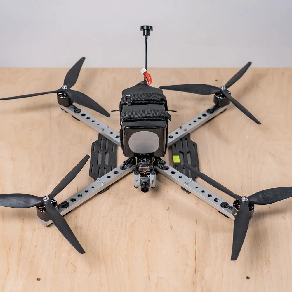 Дрон оснащений карбоновою 15-дюймовою рамою з алюмінієвими елементами, яка є легкою, міцною та стійкою до навантажень. Камера FPV CADDXFPV Ratel Pro забезпечує високу деталізацію зображення. Мотори FlashHobby Arthur A4320 350KV гарантують потужність і надійність у польоті, а пропелери HQprop 15×7×3 Black Glass Fiber Nylon забезпечують стабільність і точність керування. Політний стек Axisflying Argus ECO 80A + F722 8S відповідає за точне керування всіма системами.