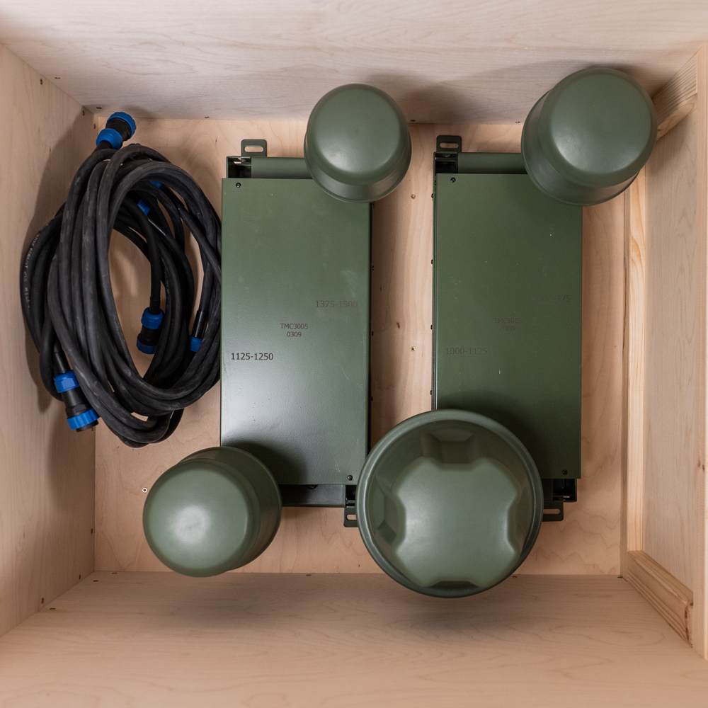 Система охоплює ключові частоти управління сучасних БпЛА – 2100-2300, 2300-2500, 2500–2700 МГц. Вихідна потужність становить 100 Вт (+20 / -10)% на кожен діапазон, що забезпечує стабільне придушення сигналу. Час безперервної роботи – не менше 60 хвилин, що достатньо для виконання більшості оперативних завдань. Дальність придушення – не менше 80 метрів, а маса одного блоку – не більше 4 кг, що забезпечує зручність транспортування та монтажу.